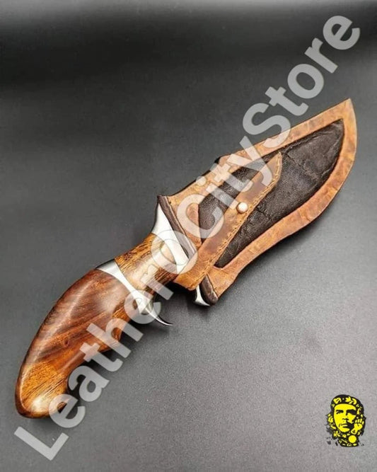 15 Inch Handmade Damascus Carbon Steel TACTICAL FIGHTING Hunting BOWIE Knife and Rose Wood Handle with leather Sheath