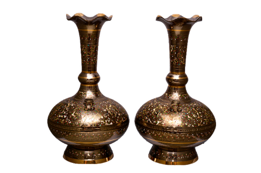 11" Decorative Vintage Antique Style Handcrafted Flower Pot, Handmade Brass Vase, Hand Engraved, Polished & Etched