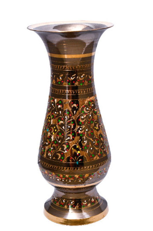 10" Decorative Vintage Antique Style Handcrafted Flower Pot, Handmade Brass Vase, Hand Engraved, Polished & Etched