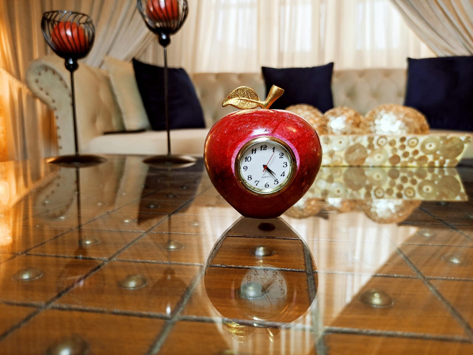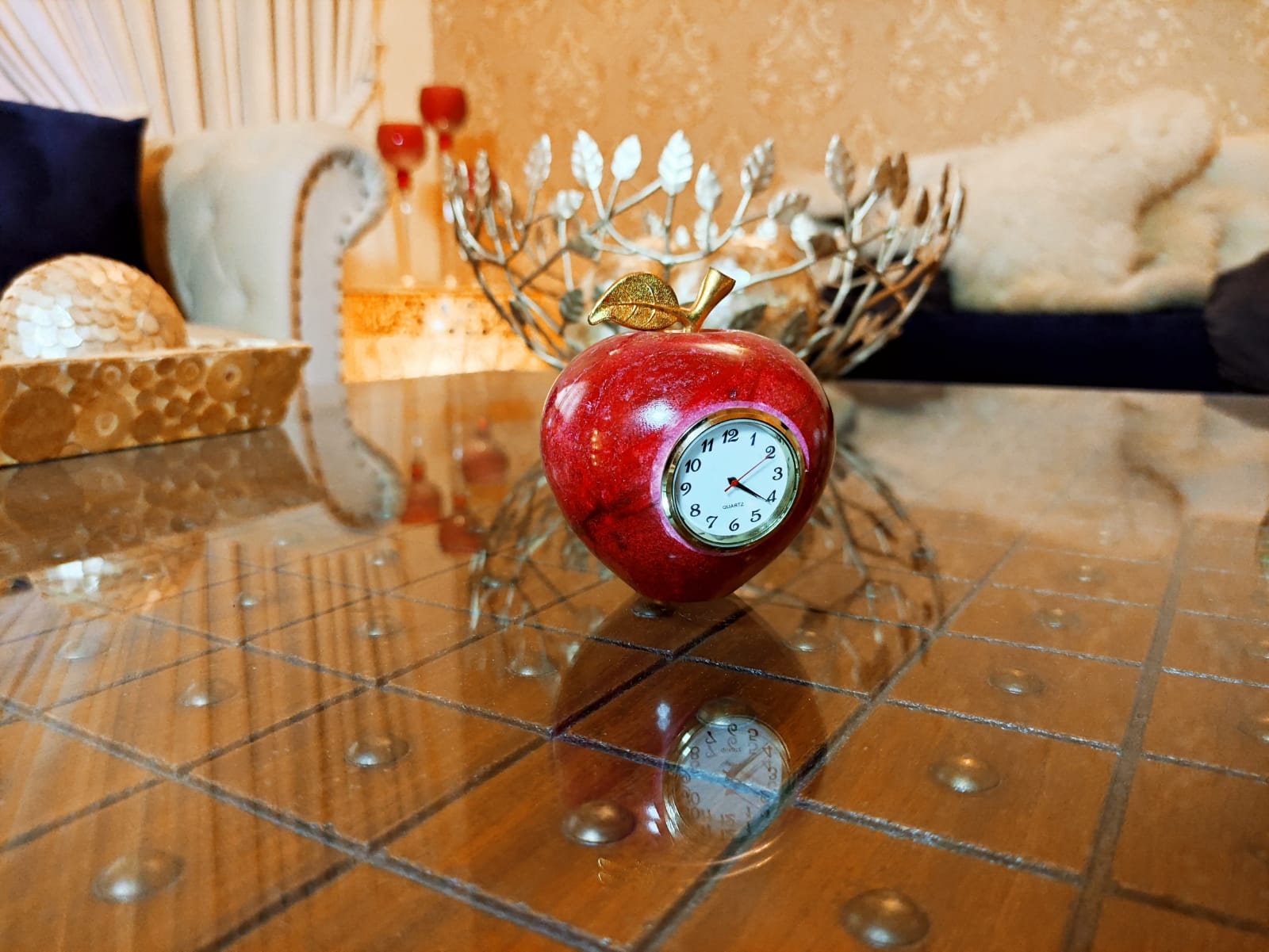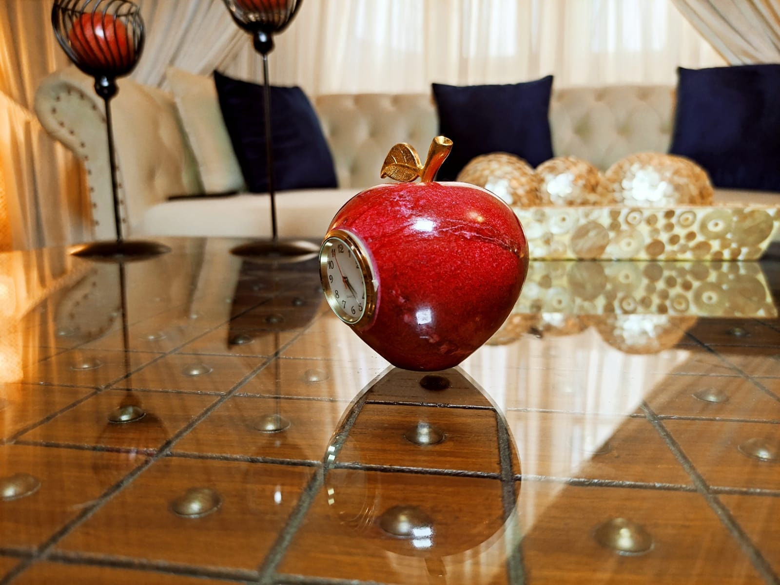 .MATERIAL: Paperweight apple shaped clock. is made of high-quality onyx marble.